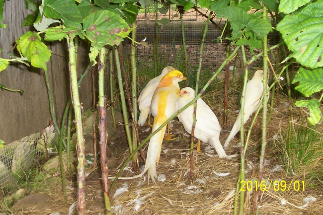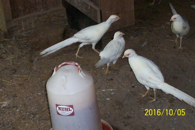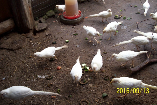 One pair of peach golden pheasants, 2016 hatch. No defects. Second and third pic are of actual birds for sale. First is of one pen of breeders. Only ship USA continental. If you buy more than one pair wait for me to adjust shipping cost before you pay.