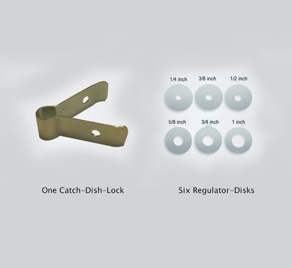 This item Includes :    1. One Feeder-Funnel   4.One Catch-Dish-Lock    2. Six Regulator-Disks   5.One Pail-Hanger    3. One Trigger-Rod       6.One Catch-Dish    7. 5 gal. Pail/Bucket with 4" hole at bottom
