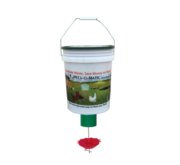 Watch the video of Chickens, Ducks and Pigeons and more using PECk-O-MATIC Demand Feeder at www.peckomatic.com   Lot of 4 Pail/Bucket (5 gal) & PECk-O-MATIC Demand Bird Feeder Kit to feed chickens, turkeys, quails, pigeons, doves, pheasants, peafowl, domestic ducks, wild ducks, geese, swans and more. Cost of feed that PECk-O-MATIC(Peckomatic) saves by eliminating waste pays for it in one month!!