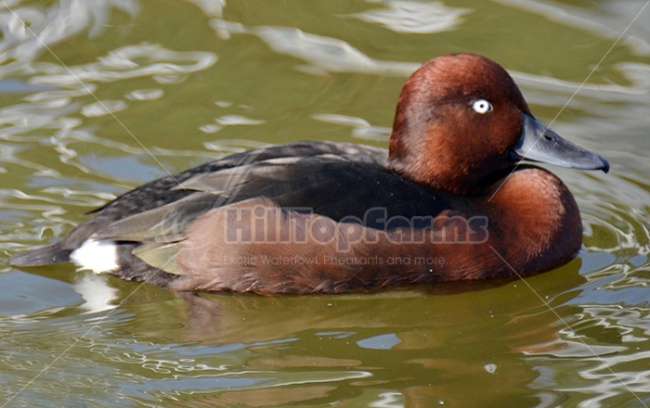 The white eyes of this duck were once considered a distinguishing feature. Ferruginous Males are a deep chestnut brown with a white triangular patch under the tail and a white belly. The white eyes stand out from the dark feathers on the head. The edges of the wings are white, with this coloring visible only in flight. Â These photographs are taken from our own farm and are not edited. They are available in JPEG format. The image you get after buying will be in 300 dpi with dimension 3275 x 2058. The images will not be watermarked. Â Hilltop Farm is located on top of one of the many beautiful hills in La Fayette, NY, and part of the Finger Lakes Region of NY. Both Otisco and Skaneateles Lakes are only minutes away from our farm. At HillTop Farm, we raise a variety of pheasants, waterfowls, peafowls, parrots, pigeons and chickens. We sell eggs, adult birds and breeders when available. Â Go ahead and buy the photograph and we will send the image file to your Email. |