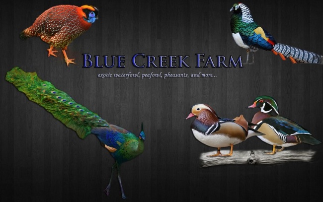 Blue Creek Farm is a family owned, small-scale farm that is located in Central New York. Our facilities are located right at our home. We do allow people to come and pick-up their birds, and we do also ship. At our farm we raise exotic waterfowl, pe