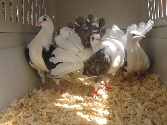 I have three young saddle back fantails for sale. They are weaned from their parents and ready to find new homes.  I banded them with some left over bands, but they are this years birds.  one is a black saddle and the other two are dun saddles. I have some other breeders that are nesting and will post their babies once they are weaned also. If you had a particular color in mind, let me know and I will set some aside for you.  I will ship the birds on the first Monday after purchase at the buyers expense. BOX + SHIPPING + BIRD PRICE = buyers total This is my first listing in this site, so bare with me while I figure out the system. |