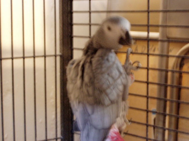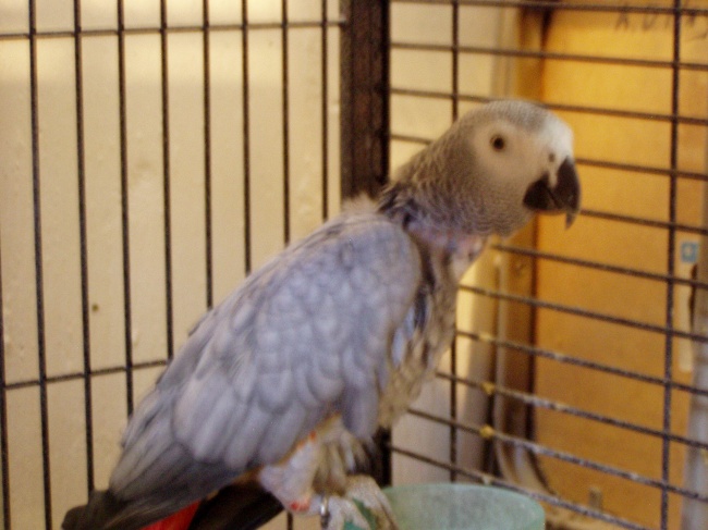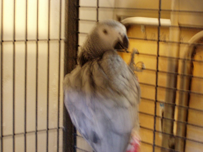 | Up for sale are my Breeder pr of African greys, NOT TAME. I have had them for almost 3 years and before I moved to Montana she laid eggs very regularly, the lady I purchased them from had many successful hatches. Since moving up to Montana I have not had eggs, but they are not in a breeding situation. Their age is unknow but somewhere over 15yrs. Male bird will take food from hand but female is NOT tame and wants nothing to do with people. They are up to date on worming, are fed a high quality pelleted Mazuri diet, with greens fruit, nuts, and vits. Will consider a possible trade for a young african grey hand tamed or other, ciaque, lorikeet, etc, just let me know what you have? Thier feathers are a little rough at the moment hen picks on the male sometimes, but they are not feather pickers or etc. Mostly because they are in a smaller cage. The picks I am posting are not great but gives you an idea of what they look like etc. Thanks |