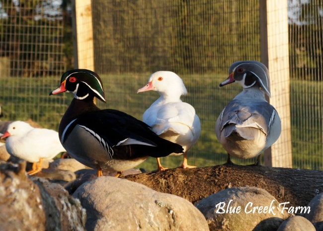 I have a 2012 hatch split to silver wood duck pair. They are fullwinged and the male is almost in full breeding plumage. The father was a silver wood duck and they do carry the silver color gene even though they look like normal wood ducks. If you breed them together you will get 20-25% silver offspring, and of the remaining normal colored ones, you will get half split to silver and the other half normal with no silver gene. They are healthy birds that are ready for your aviary!  I would prefer not to ship, but shipping will be available. The pictures are of my actual birds. Some pictures show the split to silver birds that are for sale, and others show their silver dad.  Thanks for looking. |