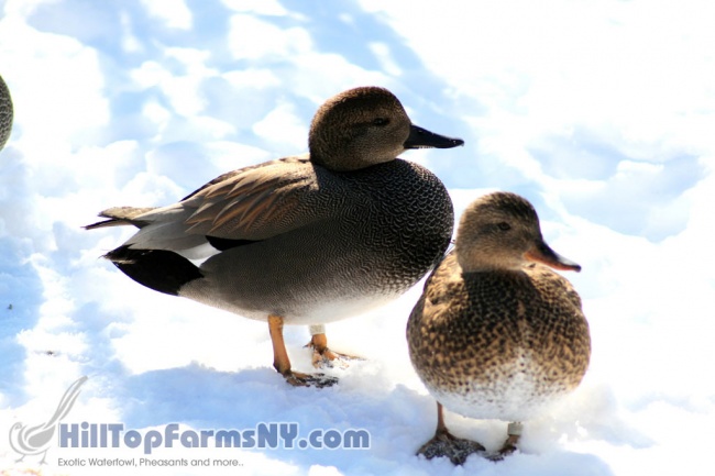 I have for sale one 2011 hatch Gadwall Drake. I am selling him as I lost the hen. Shipping would be on weather permitted days. He is in perfect shape and in good condition. He is full winged and has no defects. Picture is of the pair which I took before I lost the hen.