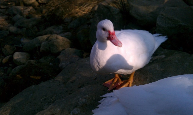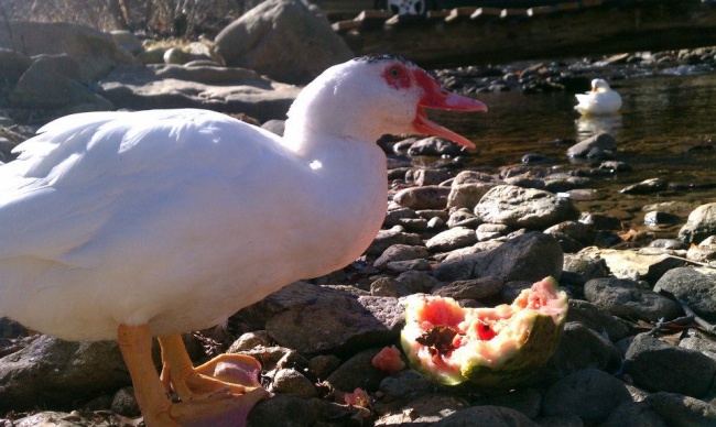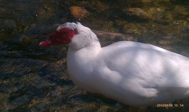 My beautiful Muscovy are fed 100% organic diet, they are completely open range, and as lovable as they are adorable! Open range meaning they have 40+ acres and a large creek to enjoy without fences to keep them in! They have a coop that they go into every night and Great Pyrenese dog that keeps them safe but they are able to go anywhere they want up and down the creek and that makes for very happy birds. They eat everything from mosquitos to ticks off the backs of your various farm animals. They make wonderful pets and can be trained to weed your garden for you while giving back to the sustainable cycle. They are also recognized by chef's worldwide as a very lean and healthy culinary delight! Hatch them in your incubator or put them underneath one of your broody hens like we have done and approx. 35 days later you have a new little miracle. A very worthwhile project for youngsters and us "older folk" alike. I have found they get along well with other family pets and all of mine have grown up with multiple cats and dogs and have always gotten along well. They are very gentle and I couldn't imagine them being aggressive toward anyone even a small child. These ducks do have the ability to fly if their wings are not clipped(I DO NOT DO THIS) however the males can just barely get off the ground a few feet going down hill because they are so heavy and the females are fairly good flyers however neither will stray very far from their safe place with food and water. If you do not want them to fly you can clip the 3rd section of wing on one side and that prevents flight. Like I said though we do not clip wings and our birds stay with us by choice. They are completely free and if they really wanted to leave they could as we have no fences keeping them in. I have completely fallen in LOVE with my Muscovy and if I could only have one type of animal on the farm it wouldn't be a hard choice. The Muscovy wins hands down!Â