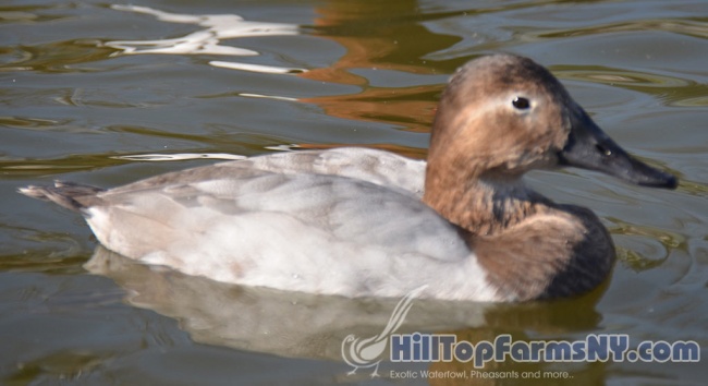 Get your eggs reserved now!!!  This is a PRE-SALE offer for 4 Canvasback hatching eggs. Price is for the lot of eggs.  These Eggs are from our proven breeder pairs. Whenever available, eggs will be taken from different pairs to give you unrelated eggs. My breeders are out of different unrelated bloodlines. All my adult birds are raised in a very stress free environment which means better fertility. The eggs you would receive are NOT washed or sanded which would reduce their hatch rate. I have a high hatch rate here at the farm but cannot guarantee your hatch rate due to many variables beyond my control such as shipping, incubators, and methods of incubation. Please allow your eggs to rest overnight before setting. As with all exotic duck eggs, they hatch better if you set them under a chicken or duck (not a very large duck).