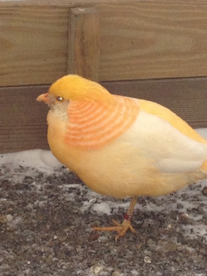 This is a PRE-SALE offer for 4 True Peach Golden Pheasant hatching eggs. Price is for the lot of eggs. These eggs are from our proven breeder pairs. Whenever available, eggs will be taken from different pairs to give you unrelated eggs.  My breeders are out of different unrelated bloodlines. Pictures are of my adult birds, they are raised in a very stress free environment which means better fertility. The eggs you would receive are NOT washed or sanded which would reduce their hatch rate. I have a high hatch rate here at the farm but cannot guarantee your hatch rate due to many variables beyond my control such as shipping, incubators, and methods of incubation. Please allow your eggs to rest overnight before setting. No Local Pickup available, Only Shipping.We cannot combine shipment. Remember, "You don't want all your eggs in one box".Eggs would be shipped in the order they are purchased and paid (FIRST COME FIRST SERVED). THESE ARE NON-RETURNABLES (NO RETURN). If there aren’t enough eggs, your money would be refunded. They would be shipped as soon as they are available. YOU WOULD NOT GET YOUR EGGS TILL THE BIRDS START TO LAY. MID APRIL - JUNE. IF THEY START TO LAY SOONER I WOULD SHIP SOONER. I only ship eggs on Mondays & Tuesdays in an attempt to get your eggs a prompt arrival to you and NOT have them sitting in a post office over the weekend. I will ship on other days only by winner’s request. Once the eggs leave my hands I have no control over how the post office would treat them. I would pack your eggs well enough to prevent damage from normal postal handling. However, I will not be responsible for lost/damaged eggs and also I DO NOT replace eggs. Shipping and handling charges are additional. It is at the buyer's expense. Shipping is available to anywhere in the lower 48 states via US Postal Service Priority Mail.  |