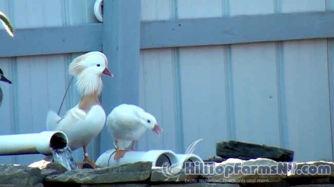 Get your eggs reserved now!!!  This is a PRE-SALE offer for 4 White Mandarin Hatching eggs. Price is for the lot of eggs.  These Eggs are from our proven breeder pairs. Whenever available, eggs will be taken from different pairs to give you unrelated eggs.We have over 15 breeder pairs. My breeders are out of different unrelated bloodlines. All my adult birds are raised in a very stress free environment which means better fertility. The eggs you would receive are NOT washed or sanded which would reduce their hatch rate. I have a high hatch rate here at the farm but cannot guarantee your hatch rate due to many variables beyond my control such as shipping, incubators, and methods of incubation. Please allow your eggs to rest overnight before setting. As with all exotic duck eggs, they hatch better if you set them under a chicken or duck (not a very large duck).