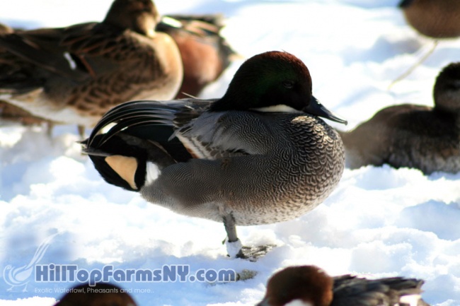 Get your eggs reserved now!!!  This is a PRE-SALE offer for 4 Falcated Teal hatching eggs. Price is for the lot of eggs.  These Eggs are from our proven breeder pairs. Whenever available, eggs will be taken from different pairs to give you unrelated eggs. My breeders are out of different unrelated bloodlines. All my adult birds are raised in a very stress free environment which means better fertility. The eggs you would receive are NOT washed or sanded which would reduce their hatch rate. I have a high hatch rate here at the farm but cannot guarantee your hatch rate due to many variables beyond my control such as shipping, incubators, and methods of incubation. Please allow your eggs to rest overnight before setting. As with all exotic duck eggs, they hatch better if you set them under a chicken or duck (not a very large duck).
