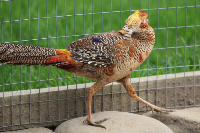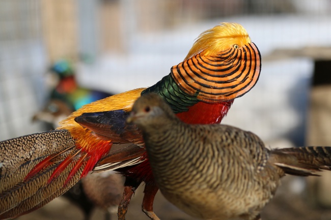 I acquired a new line of imported Golden Pheasants, so I am selling this pair of Golden Pheasants. It is a sibling pair, but they are healthy, free of defects, and very friendly. They were raised by their mother, which is much better in the long run for the preservation of pure Golden Pheasants. Their pedigreed parents are of the San Diego and Chengdu Zoo lines. The male is starting to color up, and will be fully colored once he is two. The pictures of the juvenile male are the one you are buying, the hen pictured is the one you are buying, and the colored male is the father. The hen did lay this year. Â Contact me if you have any more questions. The price is for the pair. Â I will also use Click-N-Ship shipping so that you do not have to pay as much for shipping, but local pick-up is always welcome. Â Â