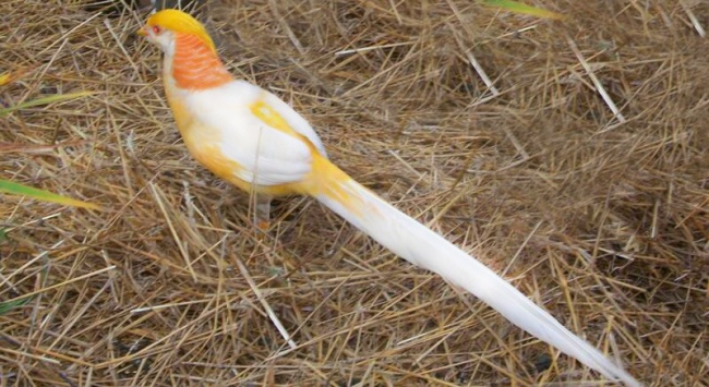 One 2013 hatch Breeder pair of Peach Golden Pheasant in full color