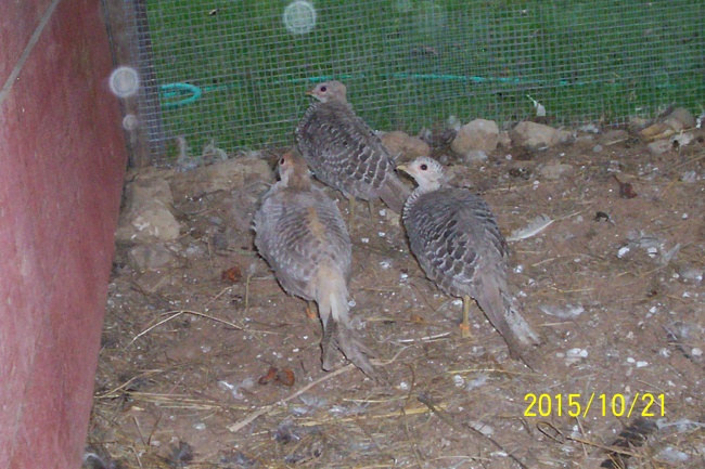 These birds are a later hatch. The 2 larger were hatched and raised by a bantam hen. One hen has a slightly curved center toe. Other than that they have no defects. Trio is 1 male and 2 hens 2015 hatch Plus box, plus shipping Second picture is of parents